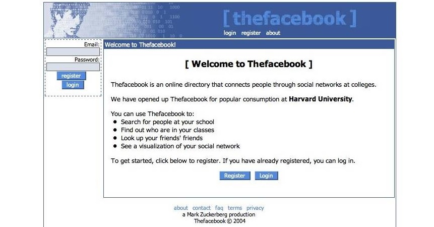4 Φεβρουαρίου, 2004 - Το Facebook ιδρύεται από τους Mark Zuckerberg, Dustin Moskovitz, Chris Hughes και Eduardo Saverin στο Harvard University.