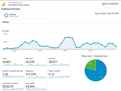 Μέσα σε μόλις ένα μήνα λειτουργίας η ιστοσελίδα μας, www.carierista.com, κατέγραψε αξιοσημείωτα στατιστικά. Η σελίδα δέχτηκε 50,977 επισκέψεις με 311,970 pageviews. Ταυτόχρονα έχουν ήδη εγγραφεί πέραν των 100 εταιρειών και αρκετές εκατοντάδες χρήστες.